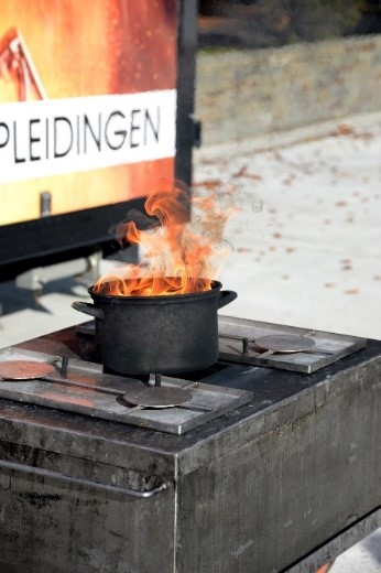 Als organisatoren van de cursus geven we elke deelnemer de kans om een beginnende brand te blussen. Je leert bijgevolg werken met een brandblusser, een blusdeken en de poederblusser.