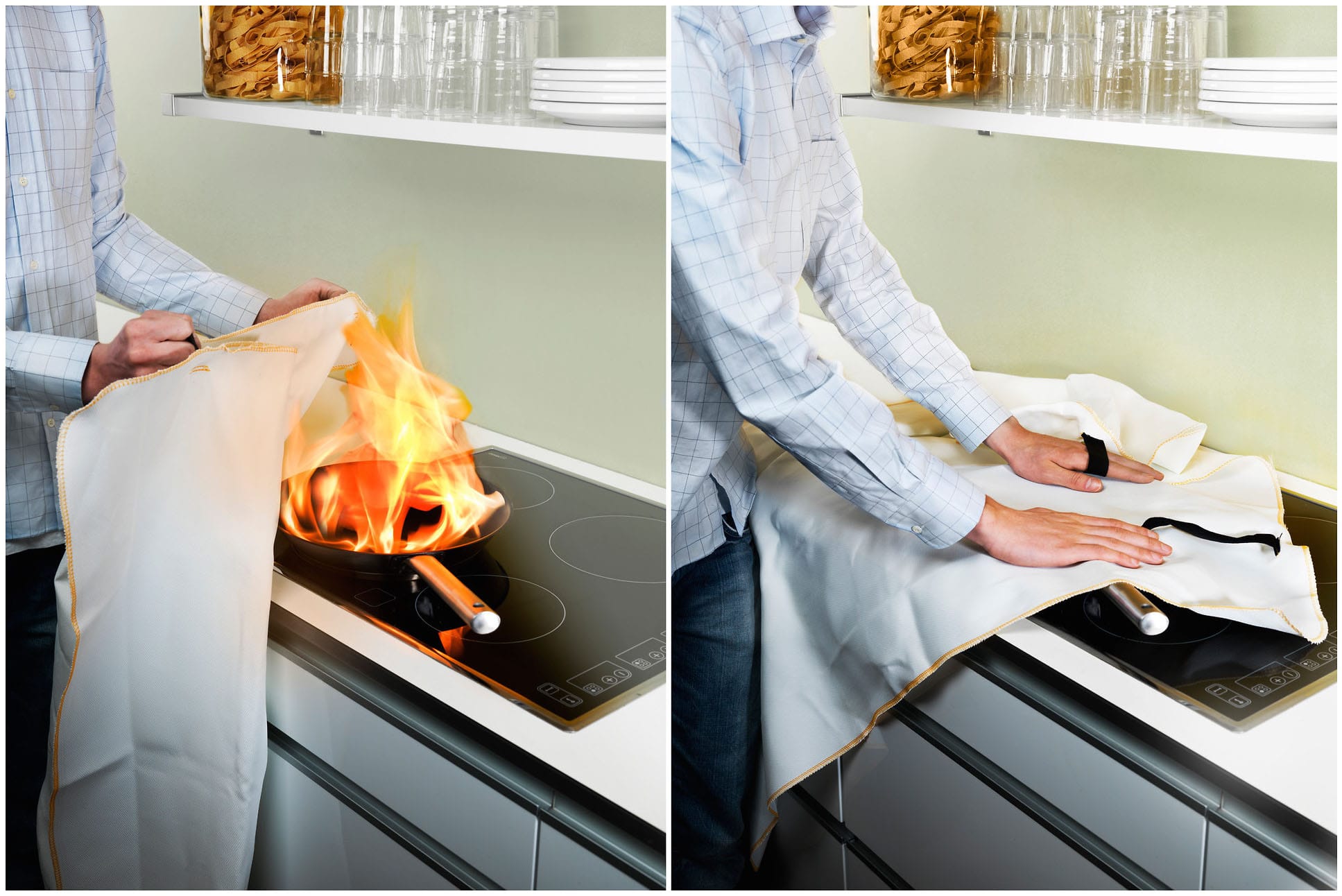 - Benaderen en doven van een frietketel met een branddeken of vochtige doek